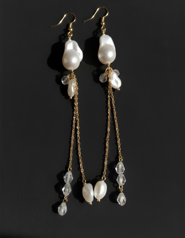 Every pair of these exquisite pearl drop earrings is carefully handcrafted, a testament to the artisan’s dedication and skill. The creation of each earring begins with the meticulous selection of each pearl, ensuring only the finest specimens are chosen for their luster, shape, and inherent beauty. The process demands a keen eye and a steady hand, as each pearl is carefully assessed before being incorporated into the design. Beyond the pearls themselves, precise placement of the delicate chain and shimmering crystal accents further elevates the earrings’ elegance. These intricate details are not merely added; they are thoughtfully integrated to complement the pearls and enhance the overall aesthetic. Our refined workmanship is more than just a technique; it reflects a deep commitment to quality in every aspect of the earring’s creation. This commitment extends to the perfect balance of elements, ensuring that each earring hangs gracefully and catches the light with captivating brilliance. The ultimate goal is enduring beauty – earrings that will remain timeless treasures, cherished for their exquisite craftsmanship and enduring appeal for years to come.